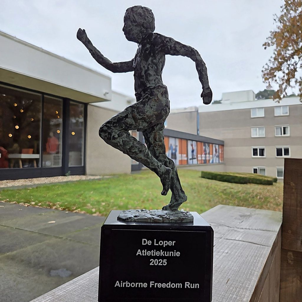 Tijdens de 29e editie van de Looptrainersdag is De Loper uitgereikt aan de Airborne Freedom Run – en daar zijn we enorm trots op. Arjan de Vries nam de award in ontvangst namens het team. Deze bijzondere erkenning staat voor wat wij al jaren mogen doen: mensen letterlijk in beweging brengen, terwijl we samen vrijheid herdenken en vieren. In een regio waar vrijheid ooit zo zwaar bevochten werd, lopen we met duizenden deelnemers om die geschiedenis levend te houden. Met ‘Run to remember freedom’ dragen we uit dat vrijheid niet vanzelfsprekend is. Het is iets dat je moet blijven koesteren én doorgeven, stap voor stap.